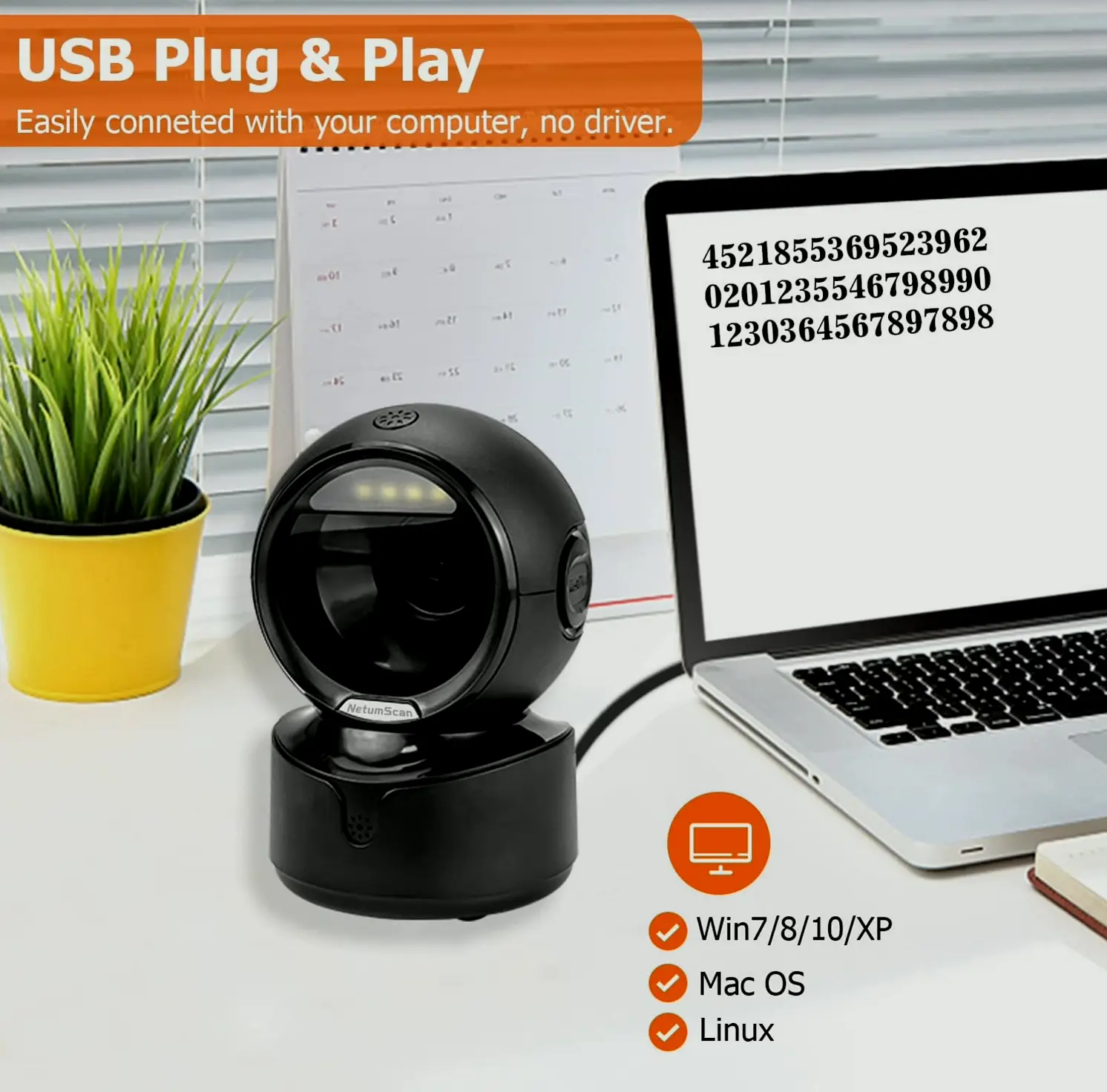 Our Omnidirectional Barcode Scanner easily captures 1D and 2D/QR codes from labels, documents, and mobile displays, detecting precisely. It processes defective, warped, colored, and reflective codes seamlessly. Perfect for high-volume commercial environments. Automatic induction sensor provides smart code recognition. The device goes into standby mode if not in use, and automatically wakes at movement. Anti-slip base secures the scanner, and anti-shock system protects. Boost productivity with automated operations. Just easy to use, works with Windows, Mac, Linux.