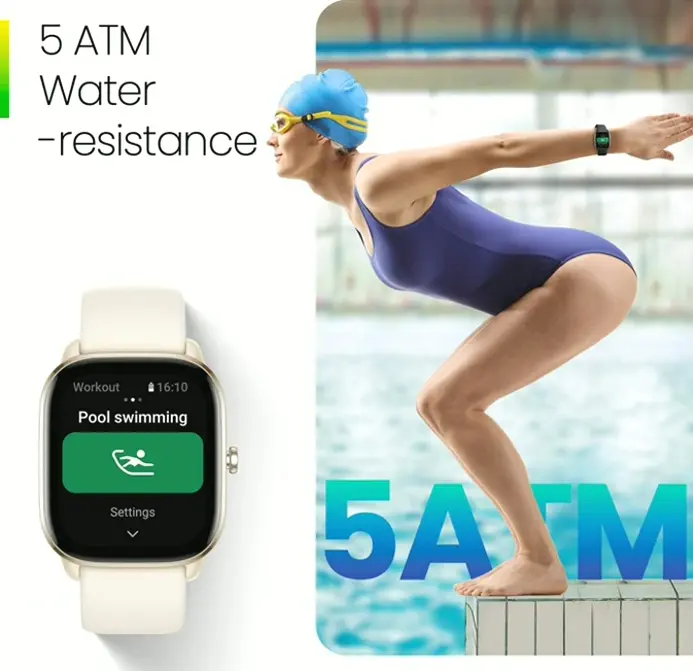 Enjoy precision positioning with the Amazfit GTS 4 Mini, which utilizes five GPS networks and improves performance using circularly-polarized antenna tech. Waterproof up to 50 m and features multiple apps like GPS, Voice Control, Multisport Tracker, and more. Using integrated Alexa and efficient Zepp OS, manage reminders, query, and get translations easily. At once, monitor heart rate, blood-oxygen, and stress in only seconds. The smartwatch also tracks sleep thoroughly. With 120+ sports modes and smart recognition for 7 sports, keep fit continually. Water-resistant up to 5 ATM, it tracks swimming data scientifically. Enjoy long-lasting battery life with as much as 15 days of typical usage or 45 days on battery saver mode.