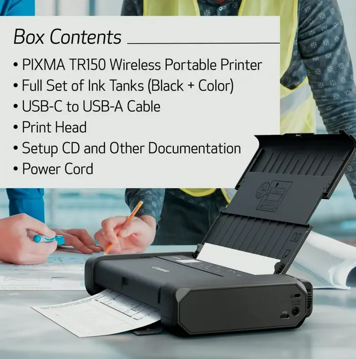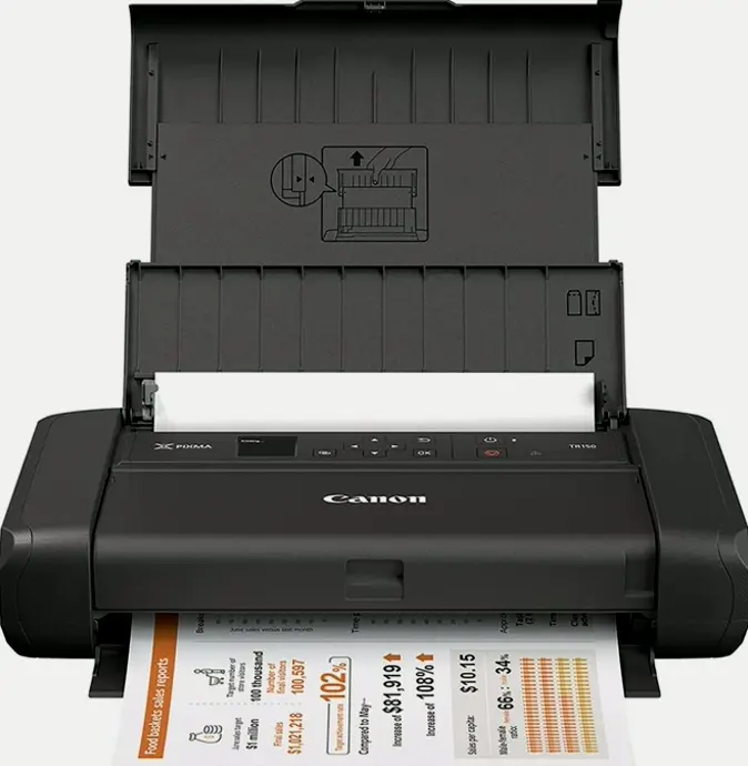 Enjoy seamless printing on the move with the Canon PX TR-150 Wireless Portable Printer. Featuring a compact design, it delivers quick operation with speeds of nine pages per minute (monochrome) and 5.5 ppm (color). You can save a maximum of 5 custom templates for convenient printing. Optional power is provided for true mobility, and you can produce documents from your compatible mobile gadget. Rated ENERGY STAR and Sustainable, it’s a useful asset for your home or office.