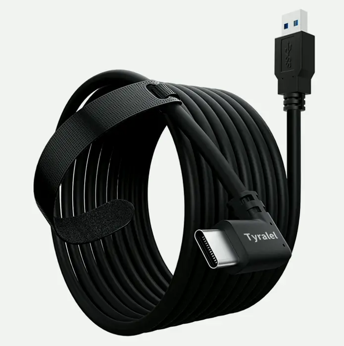 Specially designed for Quest 3/Quest 2, this fast connection cable allows you to seamlessly attach your VR headgear to your PC. Facilitates high-speed transmission and charging with maximum of 3A. Experience stable data synchronization for an uninterrupted gaming experience. The 16ft cable offers flexibility to move freely, enhancing your gaming sessions. Features an L-shaped Type-C connector for easy use, and a strap to fasten the cable. Ensure your system and Quest are running the latest version for optimal performance.