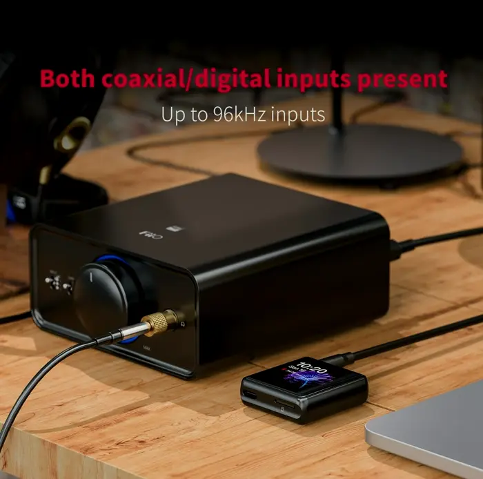The K5Pro ESS amplifier achieves high-quality sound with its high-performance decoder & digital chipset. It boasts the ES9038PRO chip supporting 32-bit audio for unmatched resolution. The XUF208 USB chip handles 768kHz plus DSD256 inputs. Additionally, it supports mobile connectivity.