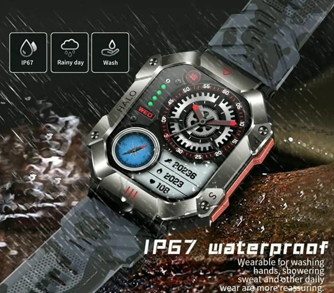 Ideal Gift Choice – An rugged military style men’s smartwatch with trendy look, varied features, practical and versatile. Includes additional bonus of two varied hue watch straps, shielding film and wiping display cloth.