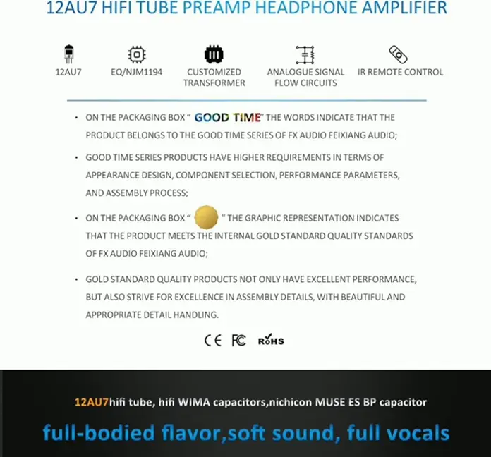 The TUBE 05 uses a high-specification 12AU7, offering a soft and full-bodied audio experience. With the high-end NJM1194 chip from Japan’s JRC, it ensures balanced left and right channels with minimal noise. Treble and low control allow enthusiasts to customize the EQ to their preferences. A customized high-performance transformer effectively minimizes interference and background noise. The high-performance transistor transforms the tube output to ensure efficient performance free of distortion. The preamp incorporates high-precision, low-temperature resistance in the analog signal circuit, and features coupling capacitors from leading brands like German We–ar and Japan’s Ni—con for an enhanced HiFi experience. The TUBE 05 is not only functional but also aesthetically pleasing with a modern, minimalist design. It’s crafted from aluminum alloy with a matte finish, ensuring both durability and elegance. Experience its quality firsthand while enjoying HiFi music.