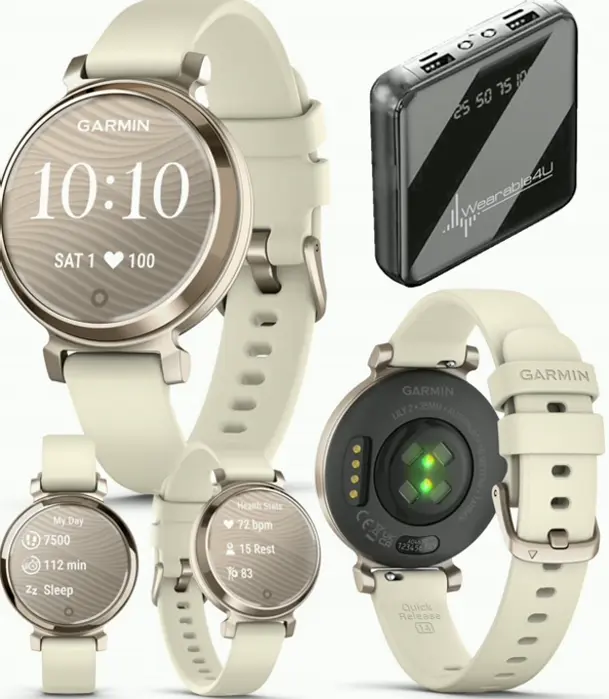 In the package, you’ll find a Garmin Lily 2 Wearable, charging/data cable, USB-C adapter, and an additional Wearable4U Power Bank. This petite, trendy fitness watch boasts a unique patterned lens that reveals a bright touchscreen with a tap. Crafted with a metal watch case and soft silicone band, available in 2 color options to match your look. Stay stylish throughout every day, while also getting insights into your health, with a battery life of 5 days. Get insights into wellness with tracking sleep score, respiration tracking, Body Battery energy monitoring, menstrual and pregnancy tracking, hydration tracking, all-day stress tracking, and cardiovascular monitoring, featuring alerts for high or low heart rates. Stay in touch with smart notifications for incoming calls, text messages, calendar reminders, and more on your smartphone. Track a variety of activities, including yoga, Pilates, cardio, dance fitness, and mindful breathing with built-in sports apps. Connect to your mobile’s GPS to precisely track outdoor walks, runs, and more. Track your daily activity with pedometer counting, calories burned, intensity minutes, and more.