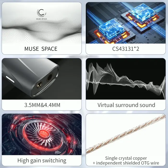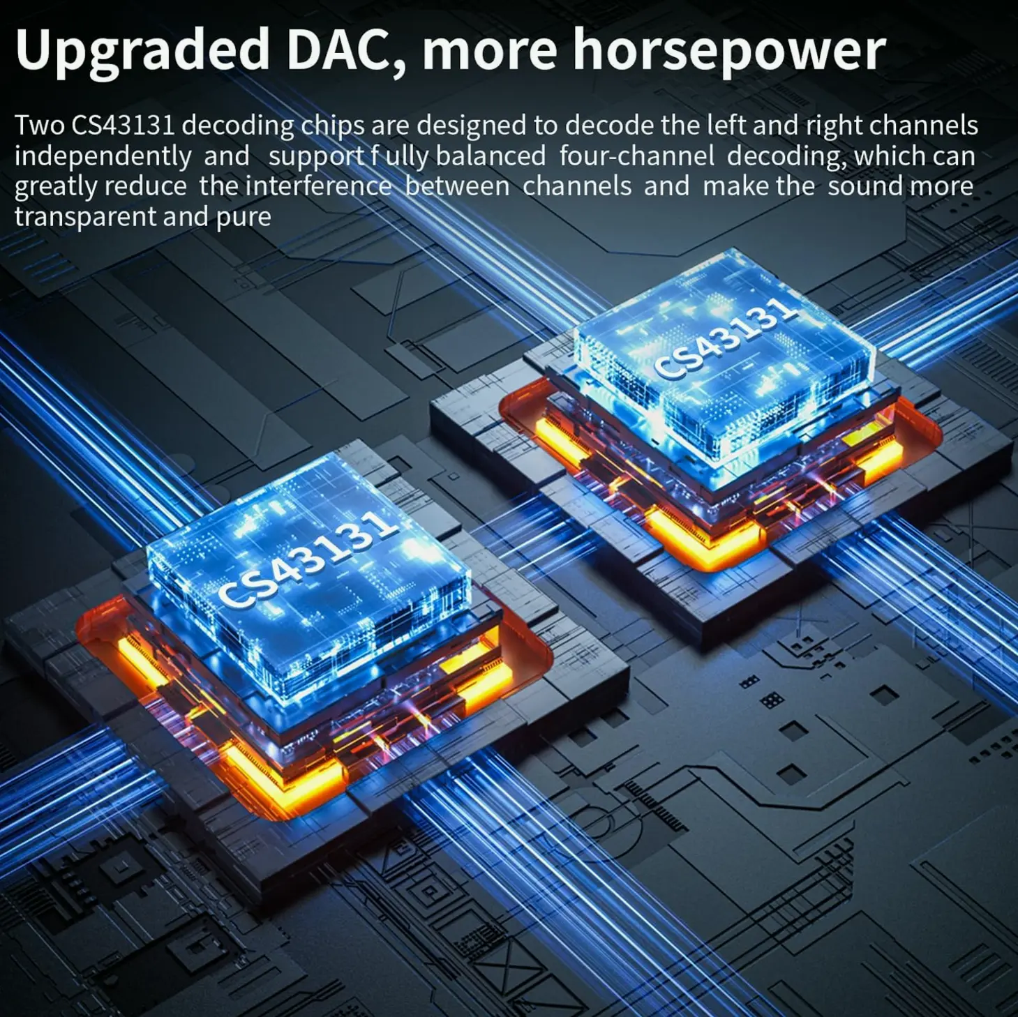 Enjoy enhanced audio with the dual CS43131 amplification units, boosting output. The upgraded DAC chips provide independent balanced decoding, reducing channel interference for purer sound quality. Adapt to audio and esports modes seamlessly, amplifying transparency and dynamics. With low-noise Ldos and high-precision femtosecond time sources, experience low distortion and superior SNR for higher sound quality. The powerful energy controller ensures cool and prolonged use.