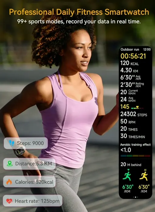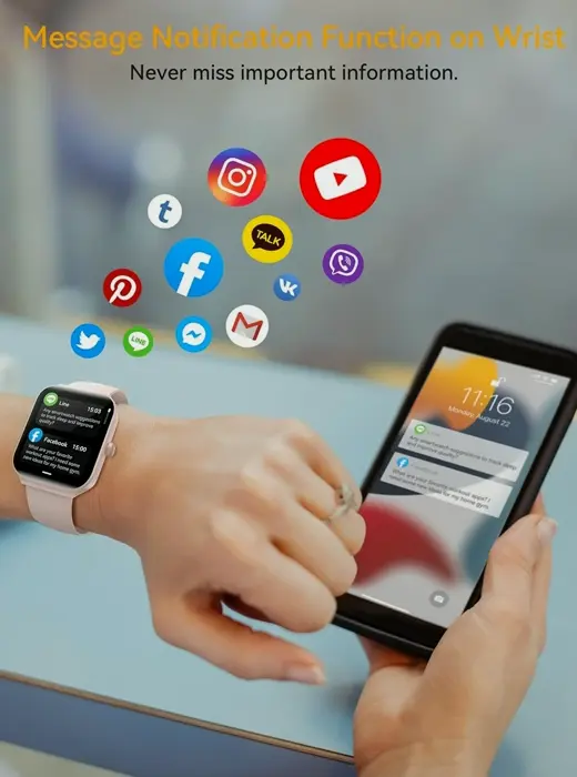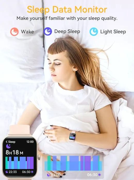 This intelligent watch provides 24-Hour Wellness & Sleep Tracking with a advanced optical_sensor, monitoring footsteps,travelled distance, and calories. It analyzes your heart rate, stress levels, and sleep patterns. Effortlessly attain your fitness goals with 100+ sports modes. The IP68 design guarantees it’s protected for swimming, and the 1.95-inch HD color display improves visibility in various lighting. Stay in touch with Bluetooth for calls and message viewing. The voice support allows hands-free commands, providing a smarter and healthier life.