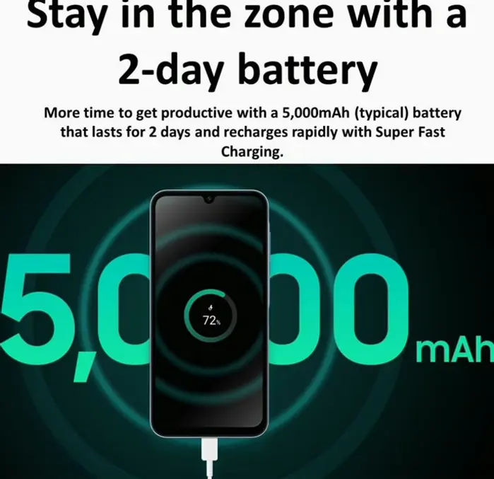 Adapter not included, 6.5″ Super OLED, 1080×2340 (FHD+), 90 Hertz Update Rate, Android 14, OneUI 6, Bluetooth 5.3. 128 Gigabytes memory, 6GB memory, Expandable microSDXC (utilizes shared SIM port), Mediatek Dimensity 6nm, Octa-core, G57 GPU, Fingerprint (side-mounted). Rear Cam: 50MP, f/1.8 + 5MP, f/2.2 + 2 Megapixels, f/2.4, Front Cam: 13 Megapixels, f/2.0, 5000 mAh Battery. 2nd Generation: 850/900/1800/1900, 3G: 850/900/1700/1900/2100, 4G: LTE Band 1 (2100)/2(1900)/3(1800)/4(AWS)/5(850)/7(2600)/8(900)/12(700)/17(700)/20(800)/26(850)/28(700)/38(2600)/40(2300)/41(2500)/66(AWS-3), 5G: N1(2100)/3(1800)/5(850)/7(2600)/8(900)/26(850)/28(700)/40(2300)/41(2500)/66(AWS-3)/77(3700)/78(3500) – Dual SIM. International Type – None in the USA. Works with Major GSM Carriers like T-Mobile, AT&T, MetroPCS, etc. Will work with CDMA Providers Such as Verizon Wireless, Sprint Network.