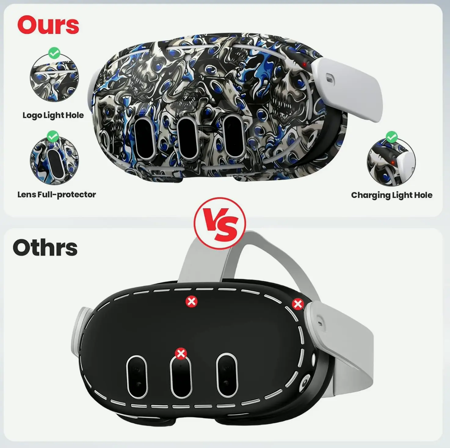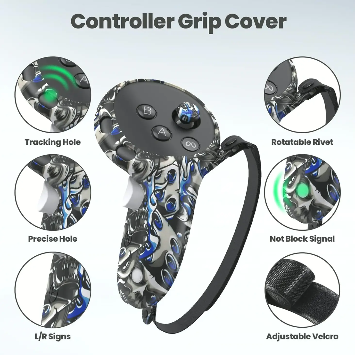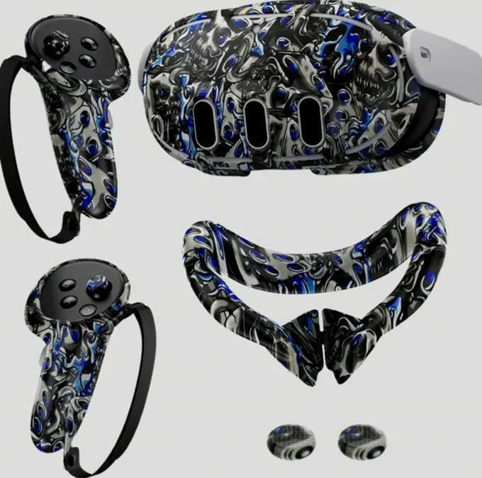 The comprehensive set contains high-quality silicone protectors for your Oculus VR headset. It includes a VR headset cover, controller covers, and a face cover, ensuring complete protection against debris, scraping, and falls. The careful construction guarantees peak signal tracking, while several heat sink ports ensure effective heat dissipation. Manufactured from soft and environmentally-friendly silicone, the face cover provides maximum comfort and cleanliness. Water-resistant, perspiration-proof, and washable, it’s ideal for long gaming sessions. This set also includes joystick caps, granting you everything you need to safeguard your Quest 3.