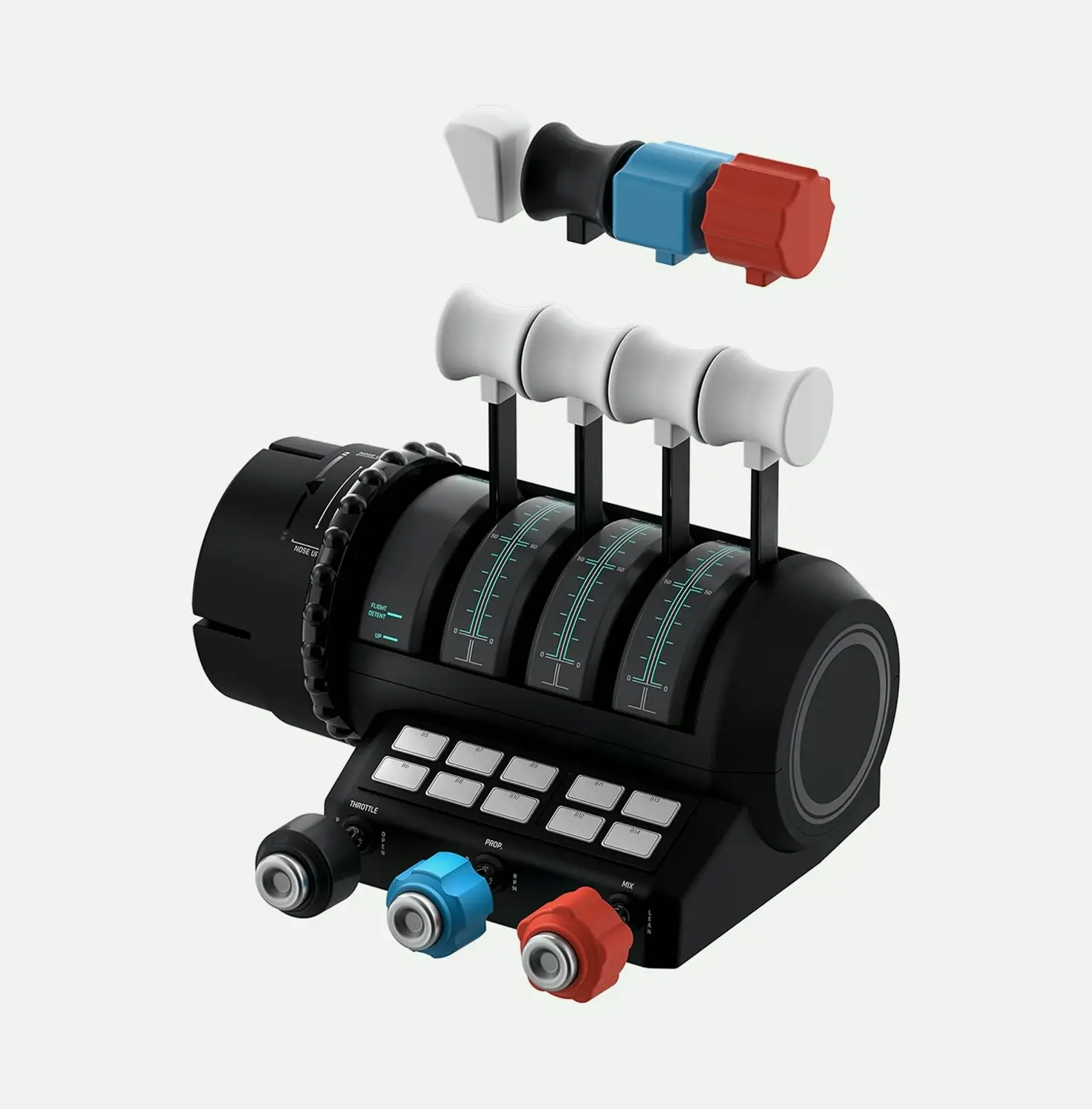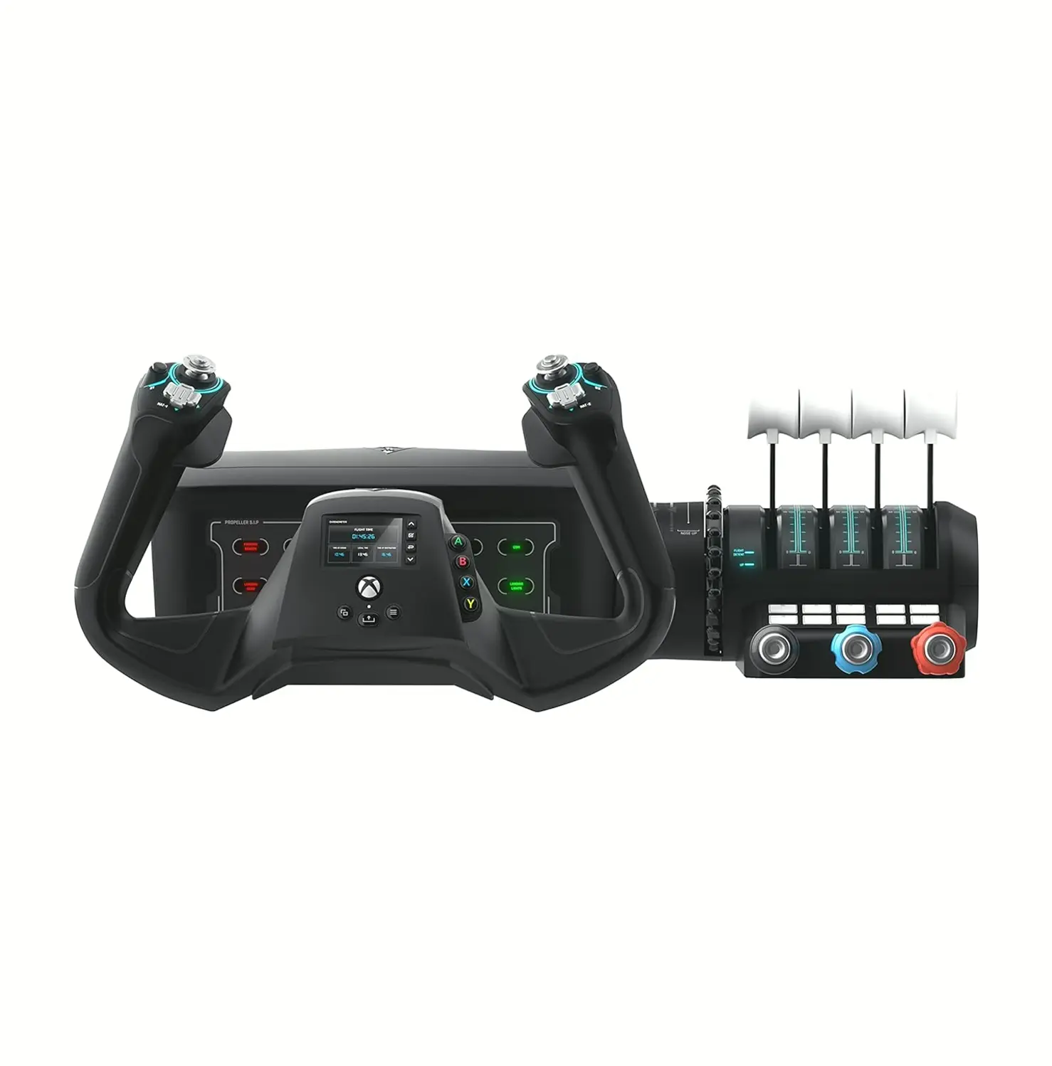 All-inclusive, comprehensive design including throttle quadrant, trim wheel & yoke. Realistic 180° yoke handle rotation with non-contact hall effect sensor. Configurable throttle quadrant with adjustable lever handles and buttons. Integrated rudder and brake controls at your fingertips. Full colored flight management display to understand and configure the system. Authentic Status Indicator Panel for PC. Outfitted with 12 analog axes, two POV switch & two 4-way HAT switches.