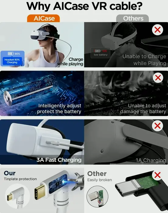 Enjoy More Games with AICase Link Cord: Links Meta Quest 3 or Pico 4 to PC, allowing complete entry to Rift S and Valve VR titles. Discover new dimensions with AICase accessories.