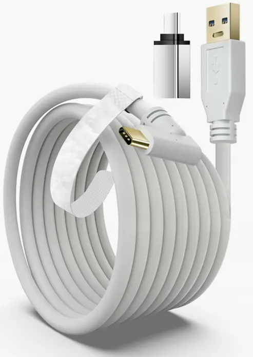 Built to Last & Lifetime Warranty: Metal-core wires retain low weight and pliancy, minimizing drag for a enhanced VR session. High-quality TPE, proven with over 20000+ bends, guarantees longevity. Includes 1 x 9.8FT (3M) USB C to A VR link, 1 x USB C to C converter. Friendly customer service with a lifetime warranty.