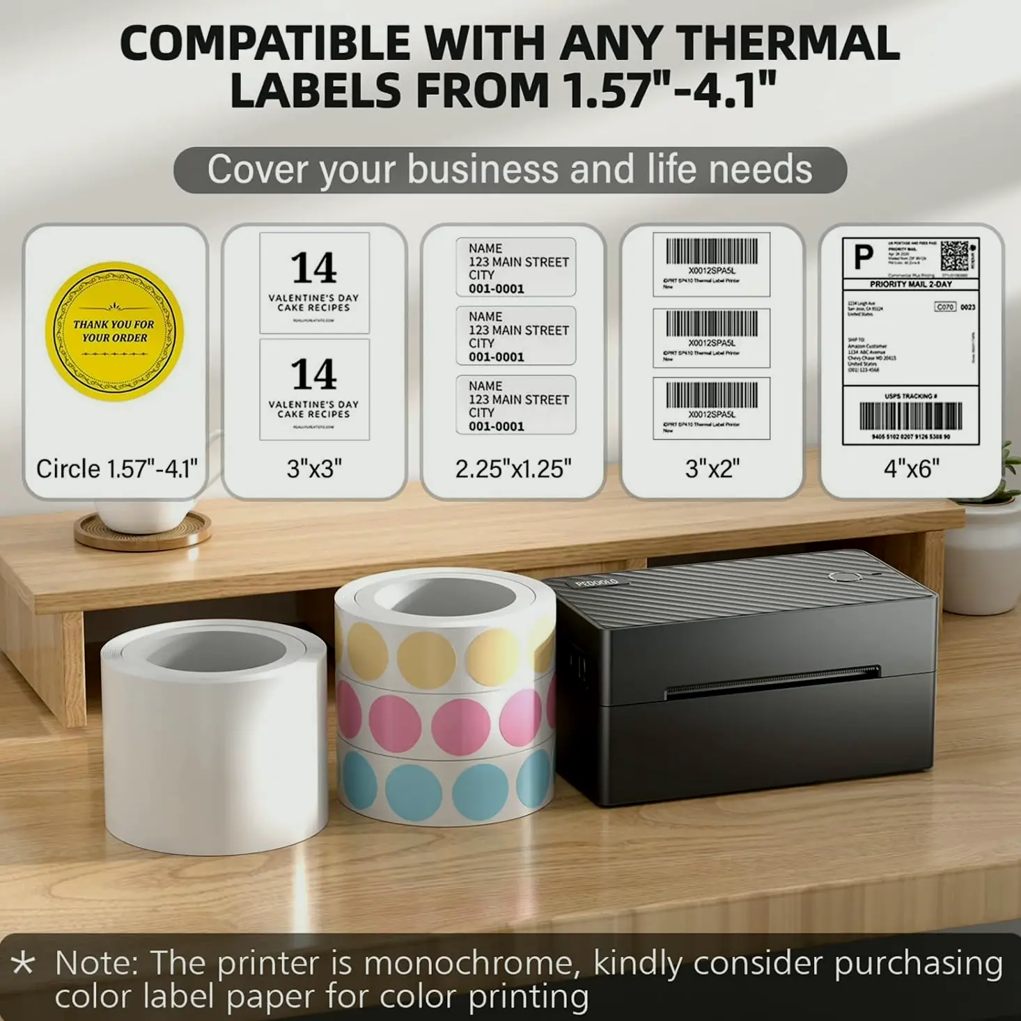 This thermal device offers wireless functionality compatibility with multiple platforms. Using the designated application, iPhones as well as Android devices can link via Bluetooth. For PC, printing is also through wireless. PC, Mac, and Chromebook users may utilize a cable connection. Chromebook users can directly print by adding the add-on “Shipping Printer”. (Note: Apple and Chromebook don’t support Bluetooth printing.) Versatile with nearly all shipping as well as e-commerce sites, including Amazon, eBay, UPS, FedEx, Shopify. (Reminder: Export as PDF from sites.) In besides, the shipping printer supports any provider heat-activated labels with 1.57″ to 4.1″ wide, enabling you to customize product labels, barcode codes, gratitude tags, etc. (Note: Customize tags via mobile APP) High-speed and clear, the PEDOOLO shipping printer features a imported advanced thermal print head that outputs up to 150mm/s (72 sheets labels/minute) and can effortlessly output more than 50 km (over 500,000 logistics labels). With dots per inch, labels come out clearly for simple reading. Achieve no-ink, mess-free, cost-effective, and time-saving output. Small and intelligent, the PEDOOLO thermal printer includes automatic alignment & sensing,intelligent paper return, and diagnostic checks, preventing label waste or jams. Efficient functioning with single press. Small size, ideal for residential, workplace, and warehouse use. Reliable technical service with PEDOOLO professionals providing assistance via phone, web chat, email, and remote-desktop. Experience quick installation and hassle-free operation. Duration technical support and 10-year guarantee. (Note: 100 pages labels and a U-disk with instructional videos is included with the product.)